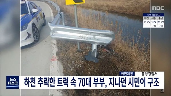 8일 충남 홍성경찰서에 따르면 지난 5일 홍성군 서부면 궁리에서 포터 트럭이 가드레일을 들이받고 도로 옆 4∼5m 아래 하천으로 추락했습니다. 차 안에는 70대 A씨 부부가 타고 있었습니다.