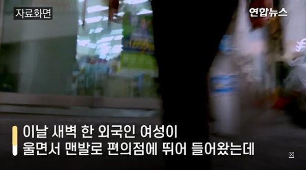 맨발로 겨울 한파 속을 헤매던 한 여성이 울면서 편의점 안에 들어왔습니다. 범죄 피해 위기에 놓였던 이 여성은 편의점 점주의 도움으로 위험에서 벗어날 수 있었습니다.