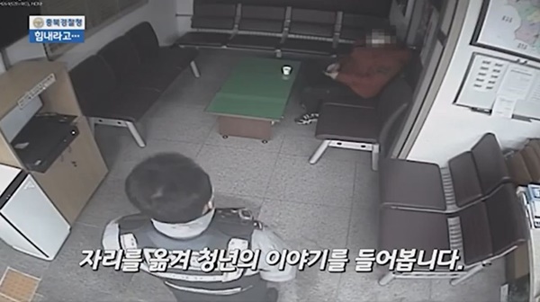 영상 속에는 늦은 저녁 한 청년이 충북 옥천군의 이원파출소를 방문해 도움을 요청했습니다. 이 청년은 경찰관들에게 코로나19로 일자리를 잃어 옥천을 방문했다는 말을 전했습니다.