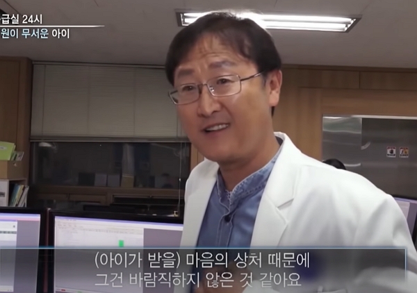 의사는 “아이에게 강제로 치료를 하는 것은 나중에 아이가 어머니, 아버지를 불신하는 상황을 초래할 수 있다. 마음의 상처 때문에. 그건 바람직하지 않은 것 같다”고 고백했습니다.