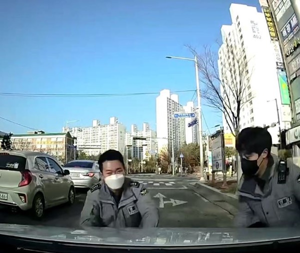 28일 부산경찰청에 따르면 이날 오후 2시 50분께 부산 해운대구에서 신고를 받고 출동하던 1기동대 소속 이원빈 경사와 김창환 순경은 이상한 장면을 포착합니다.