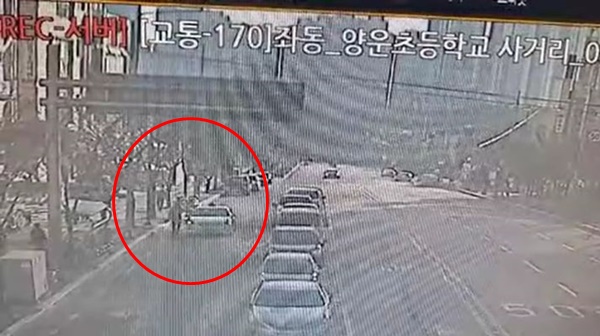 조금만 더 가면 사람들이 많이 다니는 횡단보도와 차량 운행이 많은 교차로가 있어 자칫 큰 사고로 이어질 수 있는 상황이었습니다. 게다가 근처에는 초등학교도 있었습니다.