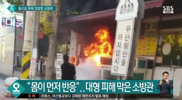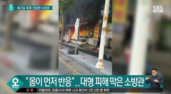 28일 소방당국에 따르면 지난 24일 오전 차를 타고 출근 중이던 인천 중부소방서 이성하 소방관은 근처 상가건물 1층에서 불길이 번지는 걸 목격했습니다.