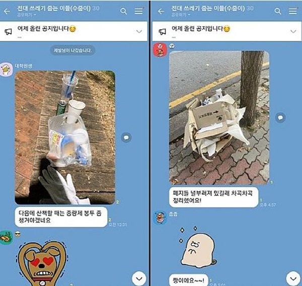 윤씨는 쓰레기를 줍고 전남대 재학생 커뮤니티 애플리케이션 ‘에브리타임’에 인증샷을 올렸습니다. 인증샷이 꾸준히 올라오면서 어느덧 윤씨 게시글은 인기글이 됐습니다.