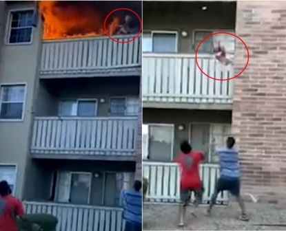 불길이 더욱 거세지자 엄마는 아들을 꼭 살려달라며 3층 발코니에서 아이를 떨어뜨렸습니다.
