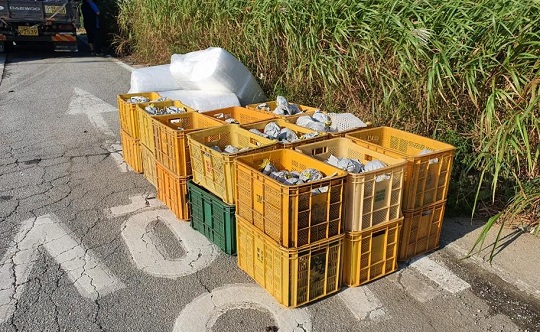 차량이 옆으로 넘어지진 않아서 다행히 다친 사람은 없었습니다. 하지만 도로 위는 여기저기 나뒹구는 플라스틱 상자와 배들로 난장판이 됐습니다. A씨는 놀라고 당황해 어찌할 바를 몰랐겠죠.