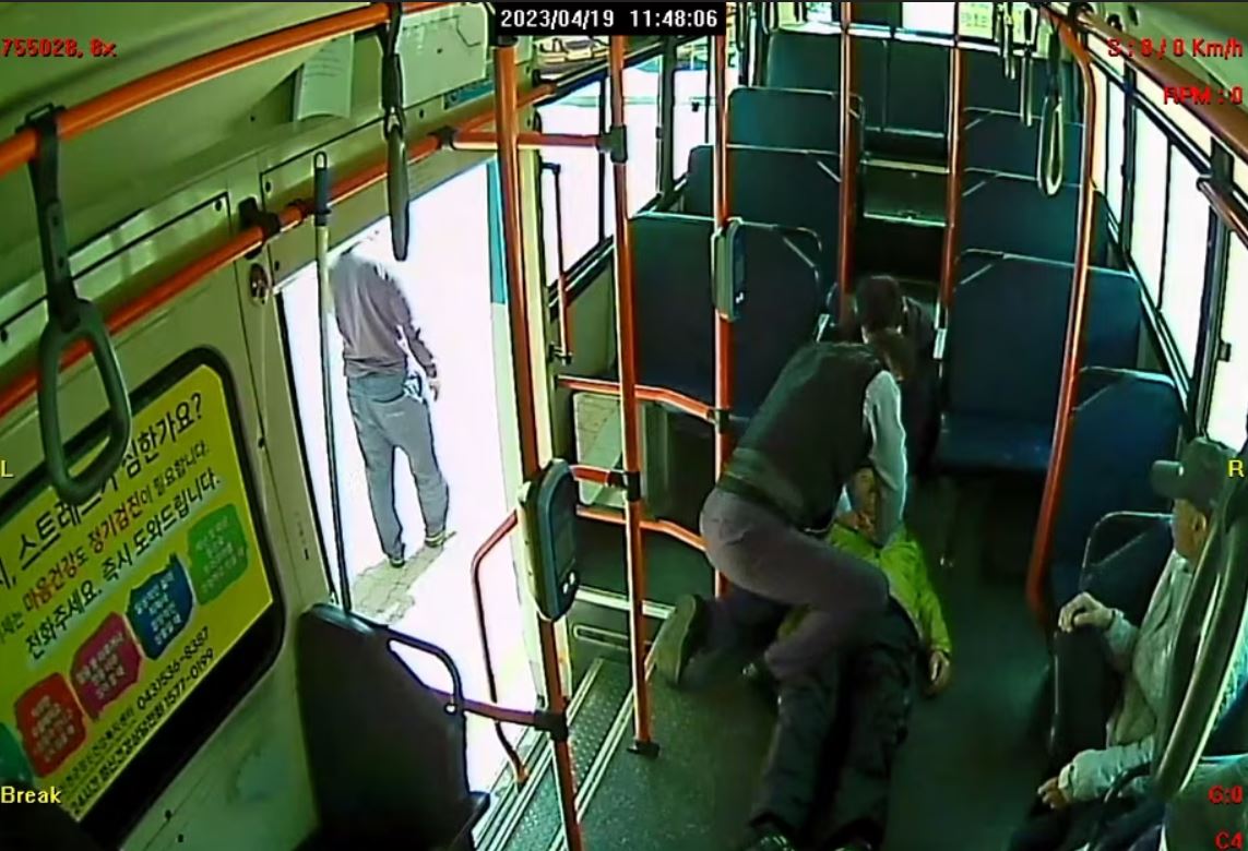 나씨는 시민에게 도움을 요청해 A씨를 버스 바닥에 눕혔습니다. 그렇게 1분을 더 가슴을 반복해서 압박하자 의식이 돌아왔습니다. A씨는 별다른 말 없이 “휴”하고 깊은 한숨을 내쉬었습니다.