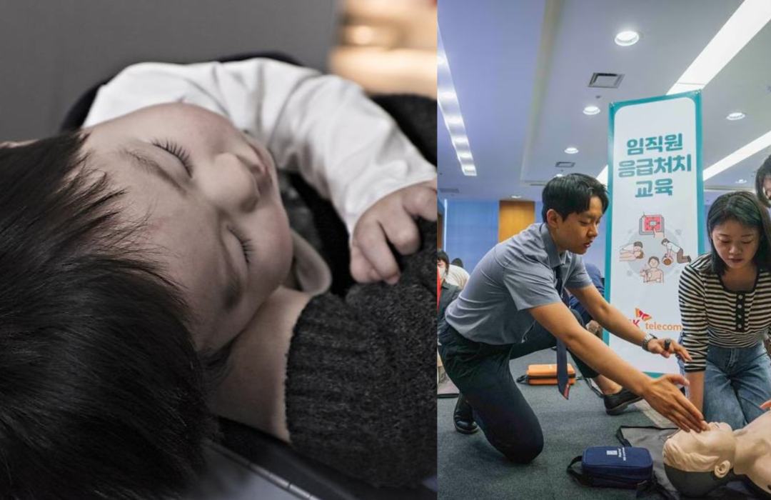 SK텔레콤 직원 지모(30대)씨는 아이의 목에 무언가 걸려 질식 위험이 있다는 걸 알아차렸습니다. 회사에서 배운 영유아 하임리히법을 떠올린 지씨는 곧바로 뛰어가 아이에게 응급처치를 시작했습니다.