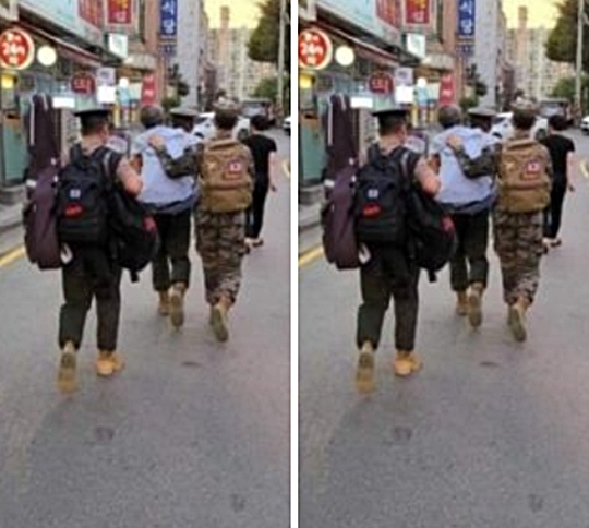 사연은 이렇습니다. 휴가 복귀 중이던 이 상병 일행은 지난 16일 오후 6시 30분쯤 김포시 통진읍 마송리 시내에서 거동이 불편한 할아버지 한 분과 마주했습니다. 이들은 즉시 할아버지에게 달려가 도움의 손길을 건넸습니다.