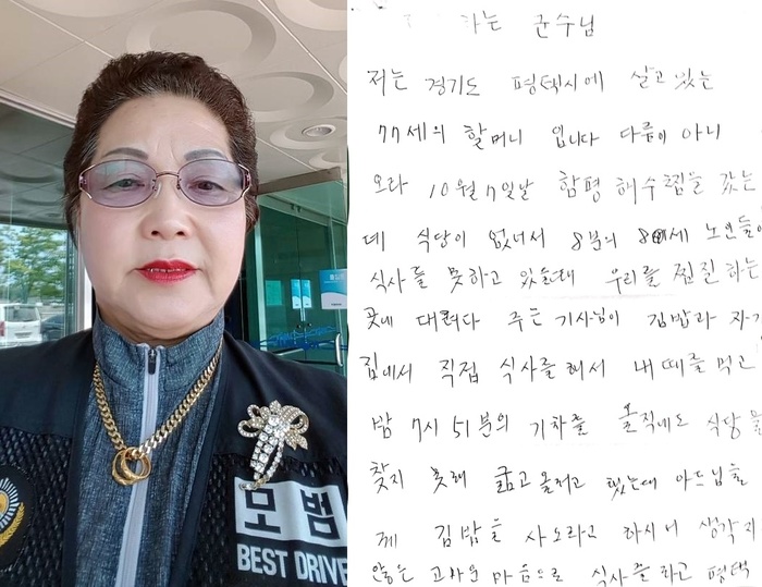 택시기사로부터 생각지 못한 환대를 받은 윤 할머니는 최근 안병호 함평군수에게 “평택으로 돌아와서 아무리 생각해도 너무너무 고마워 군수님께서 저희들의 마음을 전해주시어 꼭 칭찬해 주십사 부탁드린다”고 편지를 보냈습니다.
