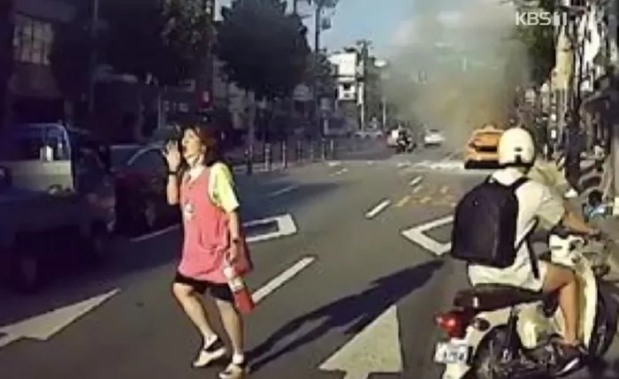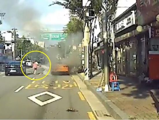 그러나 변씨는 도로 한 가운데 서서 “소화기 있는 사람 좀 빌려주세요. 택시에 불이 났어요”라고 소리치며 주변 상가에 있는 사람들에게 도움을 요청했습니다.