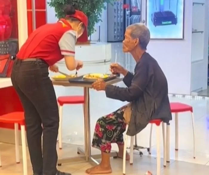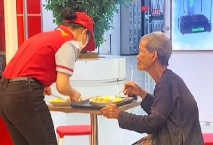 해당 영상은 베트남 띠엔쟝성 까이레이 마을의 한 프라이드치킨 전문 매장에서 촬영된 것으로 한 할머니가 홀로 앉아 식사를 하는 모습이 담겼습니다.
