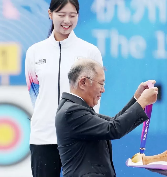 아시안게임 한창 진행중이던 지난 6일 양궁 경기장에 정의선 현대차그룹 회장이 나타났습니다. 이날은 우리나라 남녀 양궁 대표팀이 13년 만에 단체전 동반 금메달을 딴 날이었습니다.
