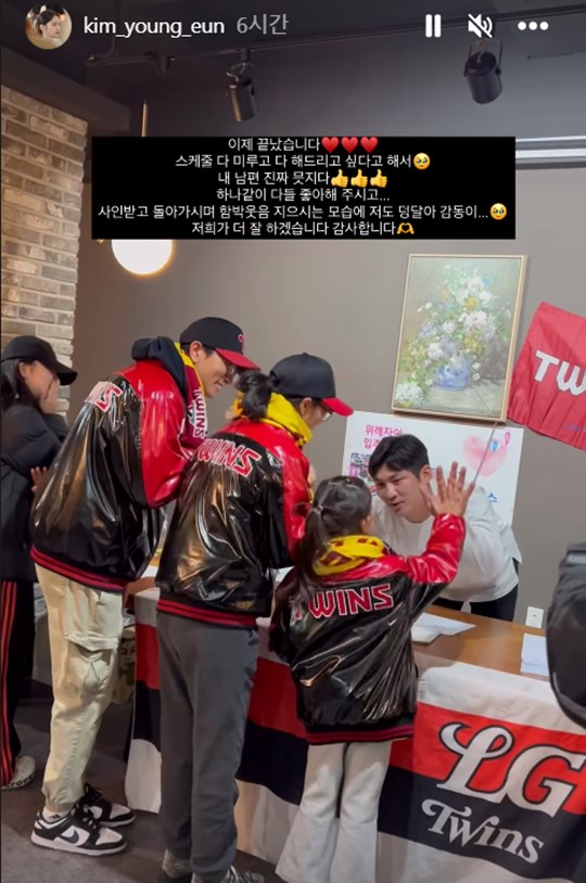오지환의 아내 김영은 씨는 17일 자신의 SNS를 통해 오지환의 ‘이웃 주민 팬사인회’ 사진을 올렸습니다.