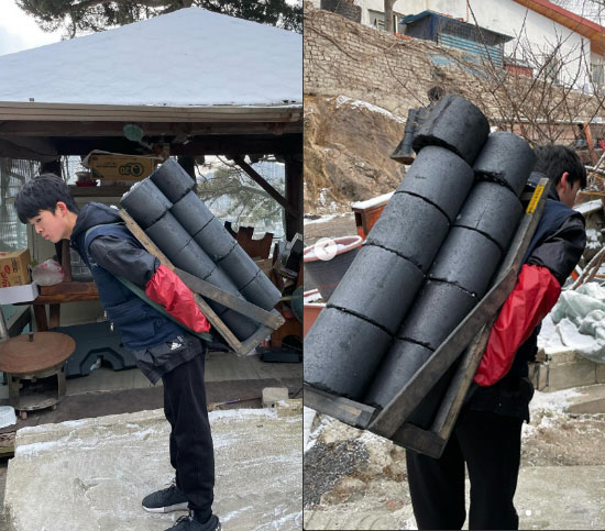 이날 션은 둘째 16살 하랑 군과 셋째 14살 하율 군과 함께 연탄봉사를 나섰습니다. 공개한 영상에는 션의 셋째 아들 하율 군이 연탄을 짊어지고 오르는 모습이 담겼습니다. 훌쩍 큰 키를 자랑하는 하율 군은 15장의 연탄을 안정적으로 운반해 눈길을 끕니다.