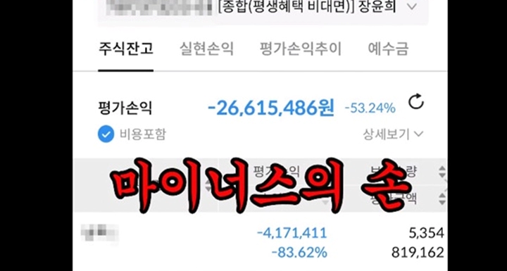 영상 하단에는 “주식 폭락장. 제 계좌 보고 힘내시길 바랄게요. 수익률과 금액까지 다 공개한다”며 “주식 열풍 끝자락에 멋모르고 들어가서 오랜 시간 마음고생 참 많이 했다”고 직접 댓글을 달며 비슷한 처지인 사람들을 응원했습니다.
