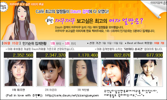 특히 이주연은 고등학생 시절, 2003년에 개최된 온라인 얼짱 투표에서 이미 연예계에 데뷔한 박한별, 남상미 등을 제치고 1위를 차지하며 화제의 중심에 섰습니다. 그녀는 중학생 때까지 평범한 외모로 인식되었는데, 이는 시력이 나빠 안경을 쓰고 다녔기 때문이라고 합니다.
