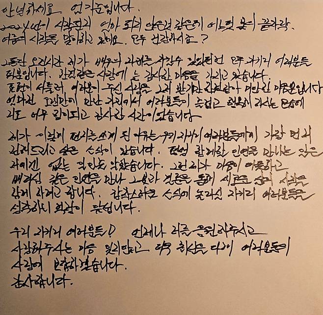 엄기준은 자신의 인스타그램을 통해 손으로 직접 쓴 편지를 공유하며 결혼 소식을 전했습니다.