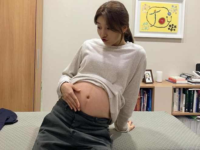 결혼도 안한 여배우가 만삭 사진을 공개해 화제입니다.